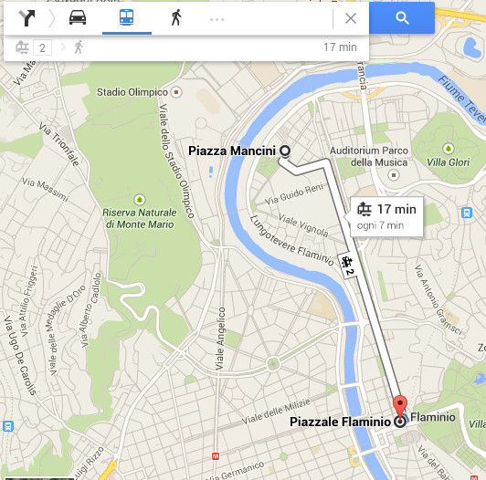 - Opzione 3: da Piazza Mancini in tram (il n.2) fino a Piazzale Flaminio.