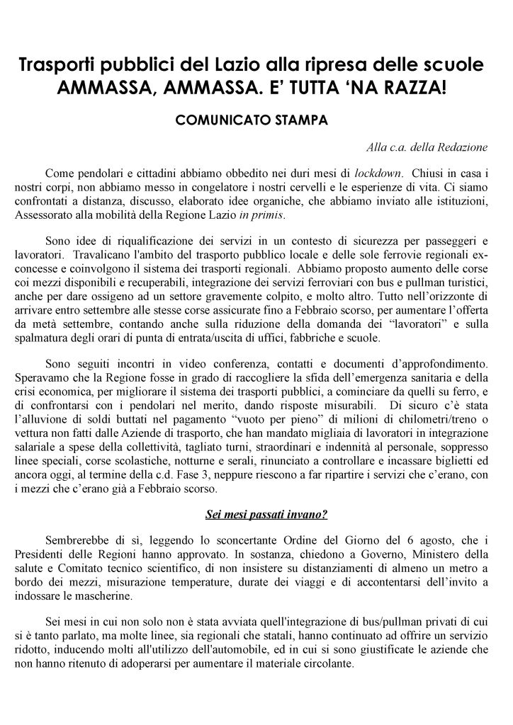Trasporti pubblici del Lazio alla ripresa delle scuole AMMASSA, AMMASSA. E’ TUTTA ‘NA RAZZA!