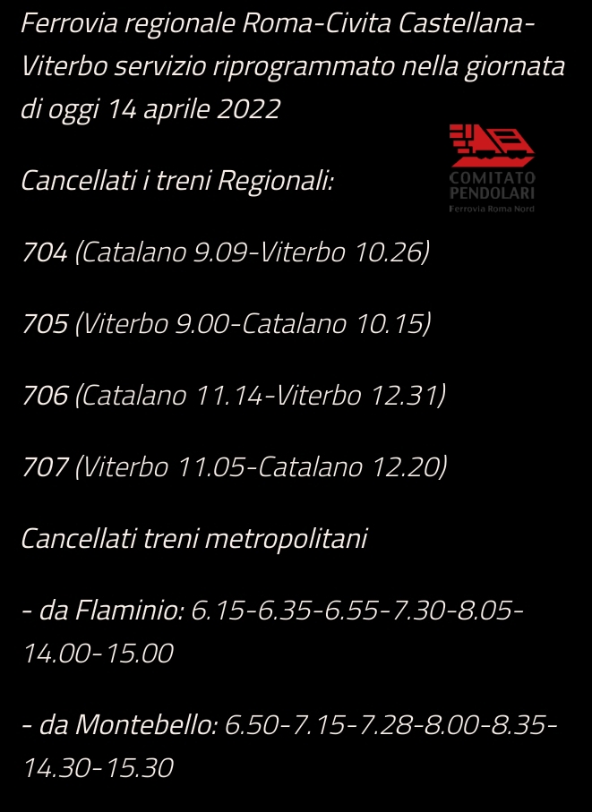 La situazione odierna sulla roma-civita castellana-viterbo è sempre in peggioramento: anzi abbiamo toccato il fondo e si inizia a scavare. Atac ha mollato, la Regione Lazio non controlla e tra due mesi subentrerà Cotral, che ha appena nominato un nuovo direttore di esercizio per quando prenderà in carico le due martoriate e semidistrutte linee ferroviarie, le peggiori della regione e tra le peggiori dell’intera nazione.