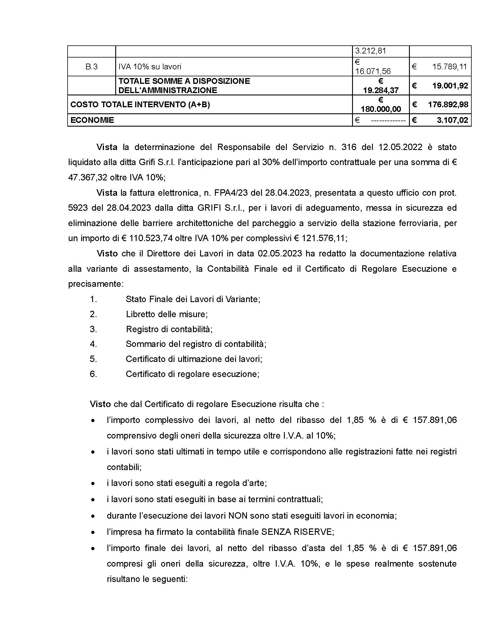 Ebbene è notizia di alcuni giorni fa che il parcheggio ha necessitato (e forse ancora necessita) di alcuni lavori di messa in sicurezza per un importo di circa 180 mila euro (come da determina sotto riportata) e che porta a un costo totale (in circa 10 anni di lavori) a oltre UN MILIONE DI EURO.